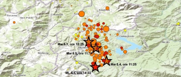 La sequenza sismica che ha interessato oggi la provincia dell'Aquila - Foto Ingv