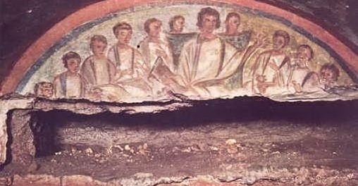 Il restauro ultimato delle catacombe di Domitilla, e il prezioso museo che le accompagna, illustrano al visitatore, attraverso immagini e simboli, la continuità tra cultura classica e cristiana nel lento e progressivo processo di cristianizzazione della società romana. Due culture, due espressioni religiose, accomunate però dalla stessa esigenza – innata nell’uomo – di trovare un senso alla vita e alla morte. Quel “senso” di “immortalità” che la cultura pagana esprimeva accompagnando il defunto con un banchetto, come un ultimo scampolo di vita donato dopo la morte, e che la fede cristiana ha trovato invece nella certezza della risurrezione. Dal mito al cristianesimo: il tempo, la vita, l’eternità.