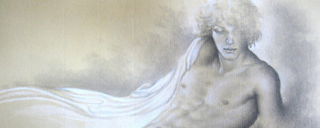 Immagine: Giorgio Dante, Disegno preparatorio per Le tentazioni di S. Antonio, grafite bianca su carta. Part.