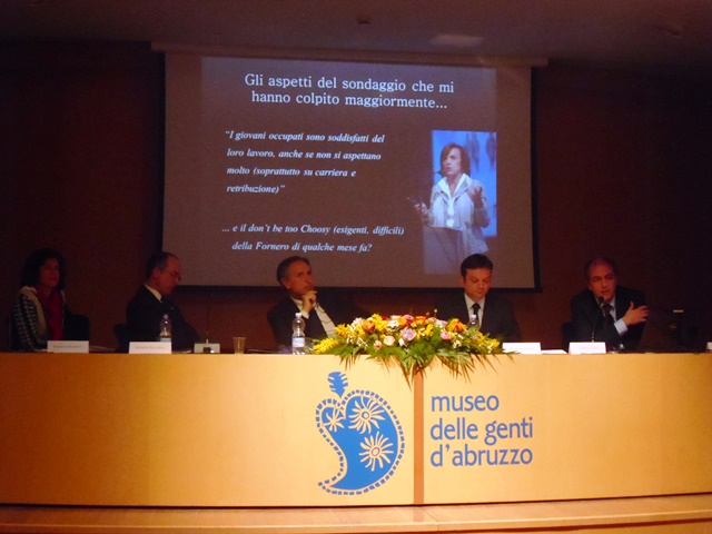 Un dato rappresentativo su tutti, è quello riguardante il valore ed il senso del lavoro che per il 42% dei giovani intervistati in abito nazionale rappresenta la possibilità di portare a casa uno stipendio, mentre per il 43,5% dei coetanei abruzzesi discostatisi dal dato nazionale rappresenta innanzi tutto un’occasione di realizzazione personale. Tanta voglia di fare e di riuscire deve, però, fare i conti con la crisi globale che, anche nella nostra regione, non fa sconti e relega i giovani a casa:«A noi – ha concluso Paolo Gatti, assessore regionale al Lavoro – interessa la massima occupazione, ma per realizzarla non bastano le politiche regionali. Occorrono le azioni di un governo riformista liberale, diverso dai precedenti, che sappiano invertire la tendenza».