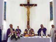 Mons. Valentinetti presiede la liturgia, concelebrata dal parroco don Giampietro Pittarello, dal vice parroco don Maurizio Volante e dal diacono Giancarlo Cirillo
