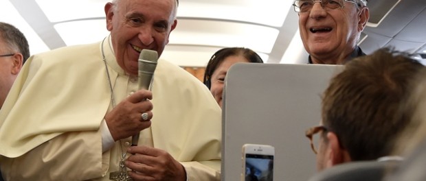 Papa Francesco colloquia con i giornalisti durante il volo di rientro dall'Armenia