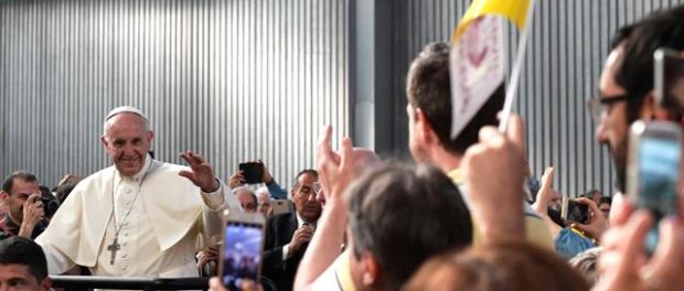 Papa Francesco durante la sua visita di ieri all'Ilva