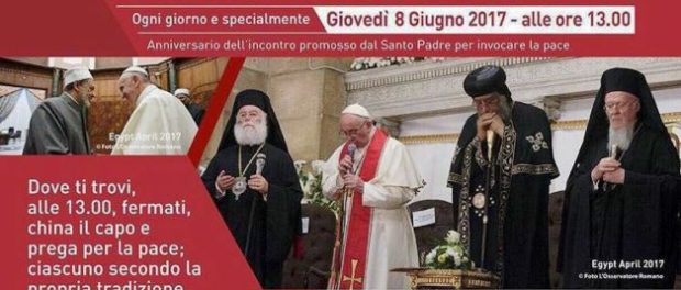 Il Forum internazionale di Azione cattolica rinnova anche quest’anno l’iniziativa “Un minuto per la pace” lanciando per la giornata di oggi “Una preghiera che cammina”: «L’occasione – si legge in una nota – è il terzo anniversario dell’incontro di preghiera voluto da Papa Francesco in Vaticano insieme al presidente israeliano Peres e a quello palestinese Abu Mazen per invocare il dono della pace, che si svolse l’8 giugno 2014».