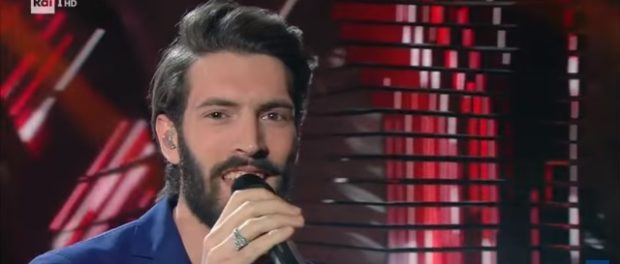 Giovanni Caccamo esegue, sul palco del Teatro Ariston, il brano "Eterno" - Foto Rai