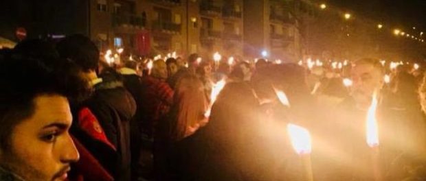 Un momento della fiaccolata che ha attraversato il capoluogo abruzzese
