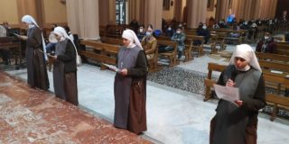 Un esempio concreto lo si riscontra in quello che è accaduto alle quattro suore dell’Istituto “Schiave del Divino amore della Fraternità Arca di Maria” (Suor Amabile Maria del tenerissimo cuore di Gesù, Suor Felicita di tutti i santi di Dio, Suor Anna Cecilia della santa passione del Figlio di Dio, Suor Clarissa Luise del Sacratissimo cuore di Gesù), che durante la messa di martedì hanno rinnovato i loro voti temporanei: «Dio ha fatto irruzione nelle nostre vite – ribadisce l’arcivescovo di Pescara-Penne – e nella nostra esistenza. Le quattro sorelle che rinnovano i voti, forse, possono testimoniare questa verità. Come, nella vocazione e nella risposta al Signore che chiamava, hanno riconosciuto l’irruzione di Dio nella loro vita e nella loro esistenza. Ma credo che chiunque di noi vive un cammino di risposta al Signore, io nell’episcopato, i miei fratelli presbiteri nel presbiterato, ma anche tutti quelli che vivono la vocazione matrimoniale o religiosa, potremmo dire che rispondiamo a questo Signore che si fa sentire e che irrompe nella nostra storia. A noi resta solo da dire, “Eccoci, siamo i tuoi servi, avvenga di noi secondo la tua Parola, come Maria”. Questa sera vogliamo affidare all’intercessione di Maria queste quattro sorelle che rinnovano i voti e la loro piccola, ma bella congregazione religiosa (ci vantiamo che quella pescarese è l’unica loro casa in Italia). E poi affidiamo all’intercessione di Maria ciascuno di noi per le nostre famiglie, per le nostre comunità parrocchiali, per i nostri gruppi giovani, per la nostra comunità diocesana, per la Chiesa e per il mondo intero e, in particolare, per quelli che soffrono in questo particolare momento che ci costringe a limitazioni e sacrifici. Ma l’intercessione di Maria anche per quelli che sono arrabbiati e pensano che non debba succedere nulla e si comportano anche in modo sconsiderato. O l’intercessione di Maria per quelli che pensano stiamo vivendo una punizione di Dio. No, assolutamente no. L’intercessione di Maria per farci capire, ancora una volta, che Dio non è contro di noi, ma è per noi, per la nostra vita, per la nostra esistenza, per il nostro amore. Per tutti preghiamo e tutti affidiamo nel cuore della Vergine Santa».