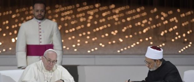 Papa Francesco e il Grande il Grande Imam di Al-Azhar, Ahmad Al-Tayyib, firmano il “Documento sulla fratellanza umana per la pace mondiale e la convivenza comune”
