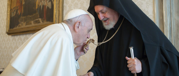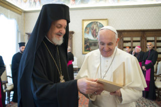 La Santa Sede ha annunciato che ieri è giunta a Roma una Rappresentanza del Patriarcato Ecumenico di Costantinopoli «nel quadro del tradizionale scambio di Delegazioni per le rispettive feste dei Santi Patroni, il 29 giugno a Roma per la celebrazione dei Santi Pietro e Paolo e il 30 novembre a Istanbul per la celebrazione di Sant’Andrea». I tre prelati ortodossi – Metropolita di Calcedonia Emmanuel, il Metropolita greco ortodosso di Buenos Aires Iosif e il Diacono Barnabas Grigoriadis – che domani prenderanno parte alla celebrazione eucaristica, sono stati ricevuti stamattina da Papa Francesco.