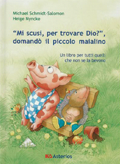 Fantastoria? No, se si considera che da circa un anno la “Fondazione Giordano Bruno” (un patrono intoccabile!) è riuscita a far pubblicare anche in Italia «Mi scusi, per trovare Dio?», domando il piccolo maialino. Un libro per tutti quelli che non se la bevono. Il libro, per un pelo non ritirato dal commercio in Germania con decreto ministeriale (il ministro, Ursula von der Leyen, lo aveva indicato come «capace di provocare il “disorientamento etico-sociale dei bambini e dei giovani”») viene stampato e propagandato dai sacerdoti del razionalismo come un faro di civiltà. I due protagonisti, ingenui come il Candido di Voltaire, vengono spinti alla ricerca di Dio da un cartello in cui si legge che «a chi non conosce Dio manca qualcosa». Slogan diretto, di buon marketing, che viene puntualmente smentito dai grotteschi personaggi cui questi si rivolgono (un po’ come pure il Pellegrino russo) – un iracondo rabbino, un grasso vescovo e un imam dal pensiero primitivo. La morale della favola si concreta quando i due tornano al cartello iniziale, dove le loro peripezie avevano avuto origine, e cancellano la negazione della frase, di modo che questa risulti: «A chi conosce Dio manca qualcosa».