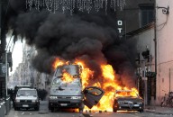 Le auto distrutte durante la manifestazione (Siciiani-Gennari)