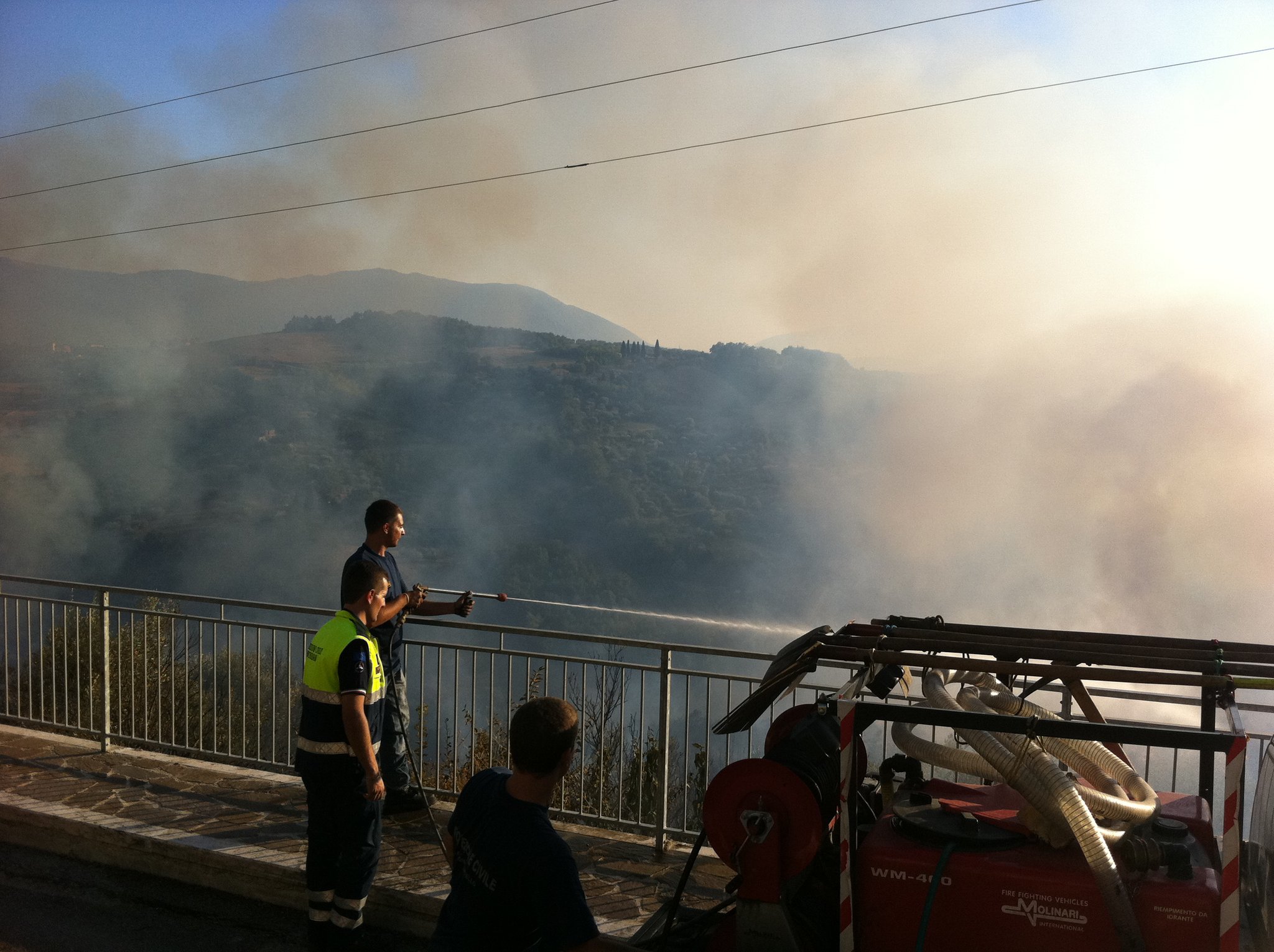 Sul posto sono immediatamente intervenute gli uomini del Corpo Forestale dello Stato con il Nos, il Nucleo operativo speciale del comando di Popoli, ed una seconda squadra giunta dal comando stazione di Torre de’ Passeri, entrambe coordinate dal Comando provinciale di Pescara, diretto dal primo dirigente Giuseppe Polci: «Le fiamme – fanno sapere dalla Forestale – erano alimentate da un vento moderato e, vista la presenza di casolari nelle vicinanze, il direttore delle operazioni di spegnimento ha ritenuto opportuno richiedere l’intervento dei mezzi aerei».