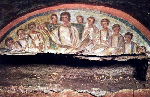 Veniamo dunque ai documenti storici, con l’auspicio di aver sgombrato il campo da sospetti d’interessi campanilistici che potrebbero inficiare la ricerca storica. Uno dei più caotici argomenti probatorî addotti (caotico ma ben smerciabile su Focus & Co.) consisterebbe nella comparsa, nell’iconologia di Cristo, del nimbo solare attorno al capo (ciò che poi diventerà l’aureola), il quale non si avrebbe prima della svolta costantiniana. È vero: non ci risultano ritratti di Cristo col nimbo solare prima di Costantino, che già aveva adottato questo segno sacrale (di ascendenza mitraica) nel conio delle proprie monete. Non ci risultavano però, se è per questo, neppure ritratti di Cristo senza barba, prima di Costantino, e (fatta salva la speculazione di qualche ardito sindonologo) il ritratto barbuto di Cristo deve il proprio canone più all’immagine stereotipata del saphòs che a un’indimostrabile circolazione di calchi dal velo sepolcrale. Sull’apporto del culto mitraico, poi, s’è fantasticato a non finire, come se di quella religione misterica si sapesse chissà quanto: analogie (abluzioni e sigilli crismatici) e differenze (esclusione delle donne) sono state tutte annotate e riportate da scrittori ecclesiastici, che non hanno mai creduto di dovervi ravvisare un’insidia per l’originalità del cristianesimo.