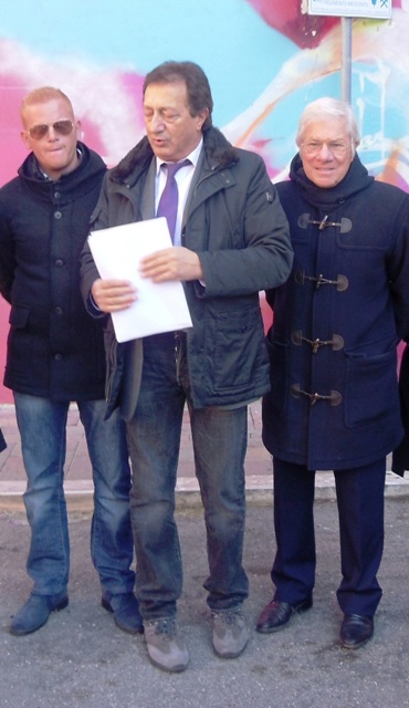 Una presa di posizione, quest’ultima, suscitata dal contraddittorio provvedimento dell’istituto di credito romano che dapprima aveva approvato la realizzazione del manufatto artistico, stanziando anche un contributo di 3mila euro, salvo poi fare marcia indietro a sei anni di distanza: «Il murale – ha proseguito il capogruppo del Pd – deve restare lì dov’è, abbellendo quella che altrimenti sarebbe un’anonima palazzina e restando un elemento identitario per l’intero quartiere». Al capezzale dell’opera, visibilmente amareggiato ma ancora ottimista sull’esito della querelle, non poteva mancare lo stesso autore della raffigurazione: «Penso che capiranno l’importanza dell’opera – ha commentato Christian Serafini – la quale ha un suo respiro se resta lì dov’è, perdendo di senso altrove».