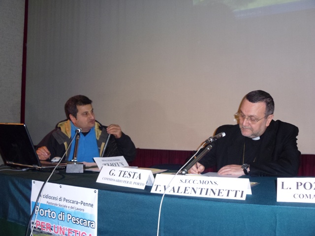 Riflessioni, queste ultime, che hanno colpito profondamente monsignor Tommaso Valentinetti, rimasto fino alla fine in rigoroso silenzio per ascoltare le voci di tutti, tecnici, amministratori e soprattutto i pescatori, chiamato poi a tirare le fila del confronto e a mantenere viva la flebile fiamma della speranza accesa nei pescaresi, che non vogliono perdere il loro porto: «La tematica – ha riassunto l’arcivescovo di Pescara-Penne – è molto complessa e richiede un’attenzione particolare da rivolgere al porto, a chi vi lavora, e specialmente al risanamento del fiume Pescara. La Chiesa, da parte sua, oltre che curatrice delle anime è anche curatrice della natura e non possiamo permettere che un problema ecologico distrugga gli interessi di chi vive del porto».