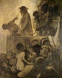 La folla informe disegnata da Daumier rinuncia a pensare, non si interroga sulla correttezza o meno di quell’urlo “in croce, in croce”, nessuna riflessione sulle conseguenze derivanti dalla scelta di liberare Barabba; quegli uomini si limitano ad agire senza subire alcuna inibizione dal loro stesso pensiero. Quante volte, ancora oggi, i pensieri sono influenzati dal solo modo di agire?