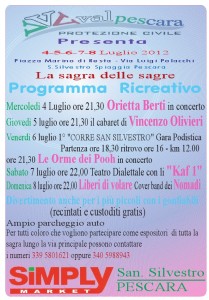 Il sipario si aprirà stasera con l’apertura degli stand che serviranno arrosticini, sagne e fagioli, specialità di pesce e carne mentre sul palco, alle 21:30, sarà Orietta Berti ad esibirsi nei suoi cavalli di battaglia. Domani sera si replicherà con lo show di Vincenzo Olivieri e venerdì, invece, si canterà ancora con la cover band “Le orme dei Pooh”. Infine sabato e domenica, alle ore 22, saranno rispettivamente il teatro dialettale dei “Kaf 1” ed il concerto della cover band dei Nomadi “Liberi di volare” ad animare le serate.