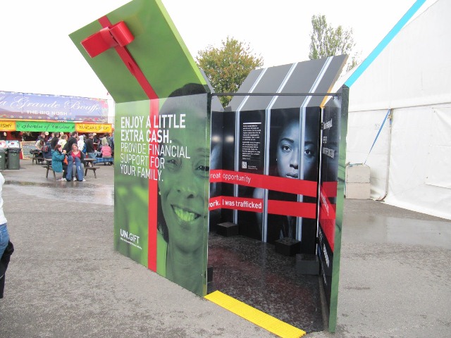 È alta più di una persona ed è rifinita da un fiocco e una promessa, “Vuoi vedere il mondo e guadagnare i soldi?”. Si tratta della grande scatola regalo posizionata appena fuori dall’Abbazia di Westminster, nel centro di Londra, davanti la quale si fermano ogni giorno centinaia di persone che sperano di migliorare la loro vita e invece scoprono che, come loro, altri meno fortunati sono stati ingannati e allontanati dal loro Paese, imprigionati in varie forme di schiavitù.