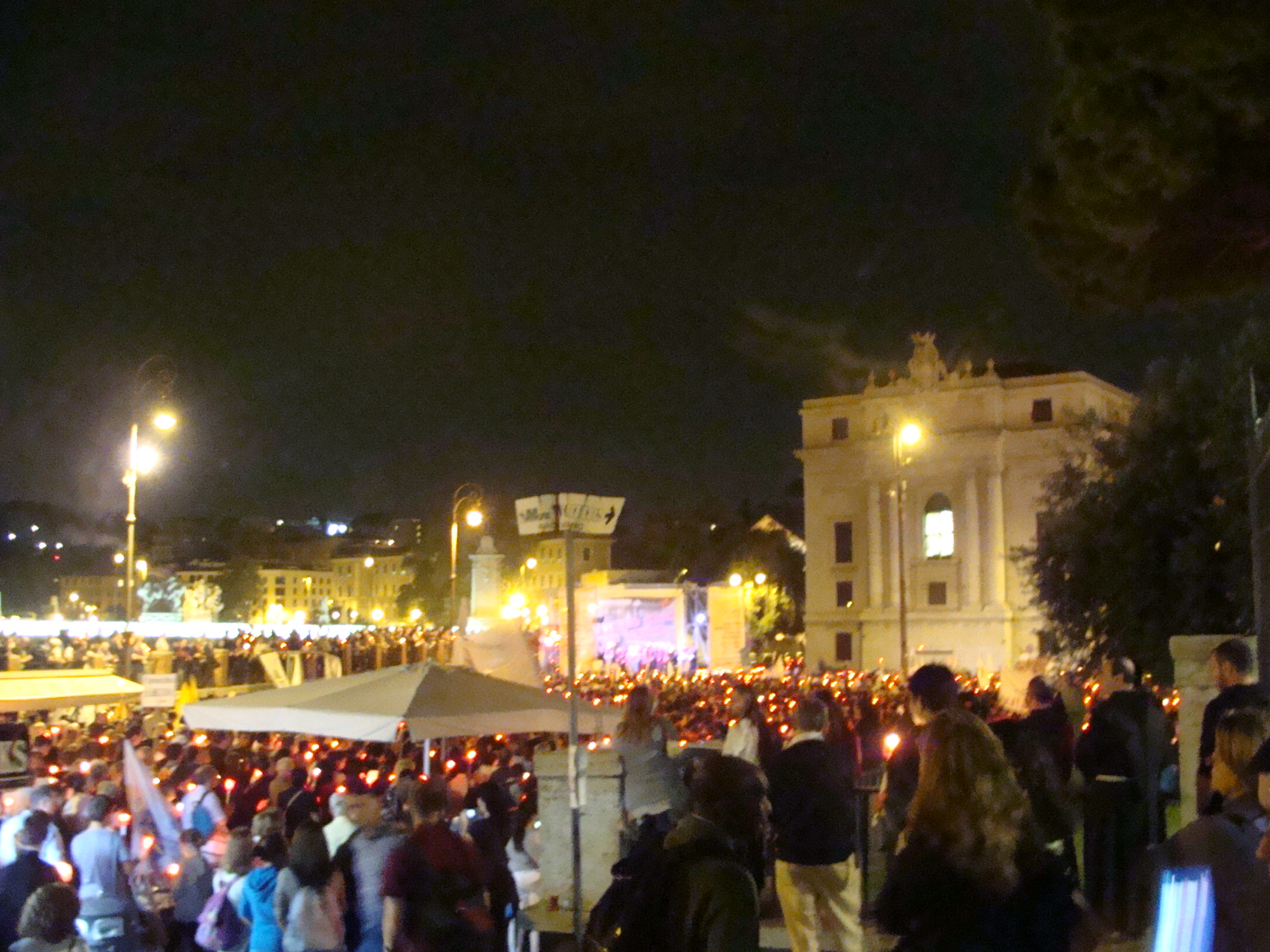 C’è da sperare che la futura memoria di questa serata voglia dimenticare certi aspetti della cornice, quali l’alternanza di riff dei Dire Straits e di canoni di Taizé sul palco a Castel Sant’Angelo; le “testimonianze” del barista del Concilio (sic! Quello che ha “preparato tanti caffè per i Padri”) e di una bambina di tredici anni che spiega cos’è il Vaticano II per lei; il solito orgoglio associazionistico che si gonfia nel ripetere il numero crescente dei convenuti e canti scritti in un latino dalle desinenze sbagliate…