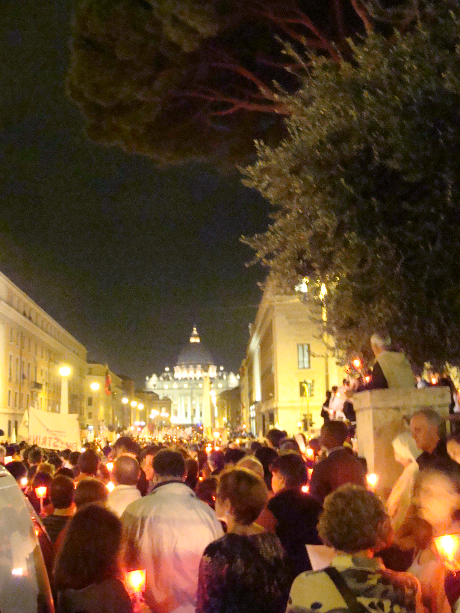 Fin da ieri pomeriggio frotte di autobus intasavano Via della Conciliazione e dintorni, congestionando a tratti le code sui lungotevere: stupisce, ma neanche troppo, che la massima parte del concorso di popolo si sia concentrata nell’evento di questa sera, trascurando invece la splendida celebrazione di stamane, con la quale è stato aperto l’Anno della Fede.