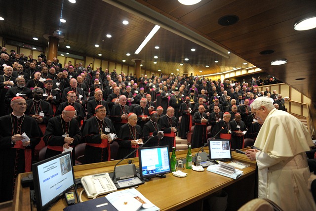 Benedetto XVI, ha quindi ribadito le tre linee pastorali emerse dal Sinodo, come la prima che riguarda i Sacramenti dell’iniziazione cristiana, con la riaffermazione dell’esigenza di accompagnare con un’appropriata catechesi la preparazione al Battesimo, alla Cresima e all’Eucaristia e dell’importanza della Penitenza». È poi attraverso questo itinerario sacramentale che passa la chiamata del Signore alla santità, rivolta a tutti i cristiani. La nuova evangelizzazione, tra l’altro, è essenzialmente connessa con la missione ad gentes: «La Chiesa – ha ricordato Benedetto XVI – ha il compito di annunciare il messaggio di salvezza agli uomini che tuttora non conoscono Gesù Cristo».