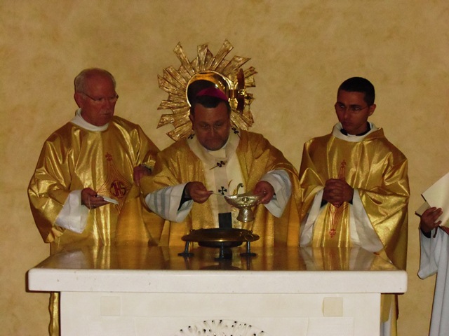 Ma tornando alla celebrazione, è stato con profondo raccoglimento che i tanti fedeli e le autorità civili, rappresentate dall’assessore comunale Adriano Chiulli, hanno assistito al tradizionale rituale di consacrazione dell’altare condotto, come da liturgia, a luci soffuse da monsignor Valentinetti che lo ha dapprima unto con l’olio sacro e quindi incensato, lasciando poi spazio ai sacerdoti concelebranti che lo hanno adornato con tovaglie e candelabri accesi.