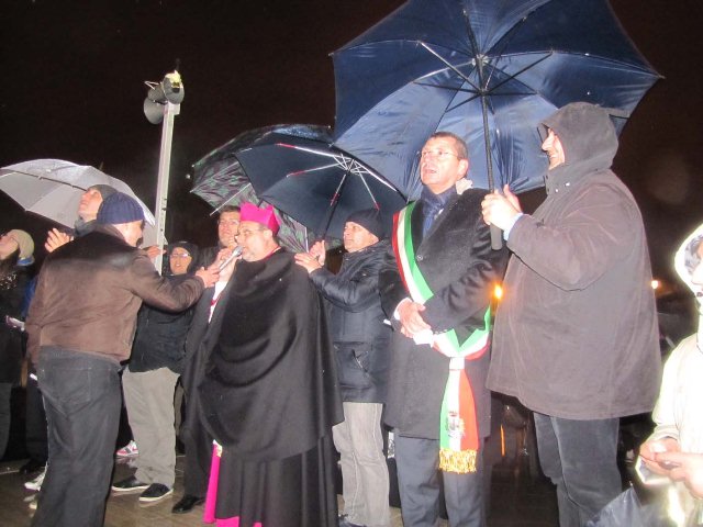 Al termine della celebrazione eucaristica, nonostante il forte vento e l’intenso nevischio in atto, si è poi regolarmente svolta la processione che, dalla chiesa di Sant’Andrea, ha portato i fedeli fin davanti la statua della Madonnina del Porto dove monsignor Valentinetti, alla presenza del sindaco di Pescara Luigi Albore Mascia, ha benedetto la corona di fiori che i Vigili del Fuoco di Pescara hanno issato fino ad incastonarla all’effige mariana: «Il maltempo – ha concluso il primo cittadino di Pescara – non ha fermato comunque la fede e il forte desiderio di ripetere un rito antico, tradizionale, anche per rispetto alla marineria che considera un po’ la Madonna del Porto la propria “madre” protettrice. La partecipazione del territorio, soprattutto di tanti giovani, è stata straordinaria, testimone di un tempo diverso che stiamo vivendo, quando, anche a fronte delle difficoltà del territorio, si avverte più forte il richiamo alla speranza, al “credo” collettivo, a cui affidare le proprie preghiere».