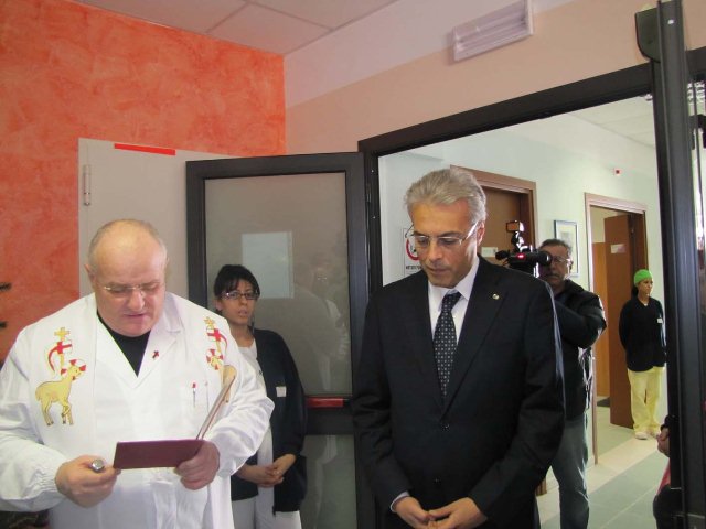 La cerimonia di inaugurazione, si è così aperta con la il taglio del nastro, compiuto dal presidente della Regione Abruzzo Gianni Chiodi, al quale ha fatto seguito la benedizione dei locali grazie al rito officiato da don Giancarlo Mandelli, cappellano dell’Ospedale Civile. I degenti dell’Hospice saranno per lo più malati oncologici con una presunzione di vita superiore alla settimana o comunque malati non oncologici affetti da una malattia terminale, ma al di là di ogni luogo comune la struttura, dove opereranno tre medici, sette infermieri professionali e otto operatori sanitari coordinati dalla dottoressa Marisa Diodati, non sarà un luogo dove i pazienti attenderanno inermi la fine della vita: «Questo – ha spiegato il professor Tullio Spina, direttore dell’Unità operativa di Anestesia, Rianimazione, Terapie del dolore e Cure palliative della Asl di Pescara – vuole essere un luogo di ristoro sia per i malati, che vivranno in un ambiente casalingo avendo l’assistenza di un reparto ospedaliero fino alla dimissione, che per i loro familiari».