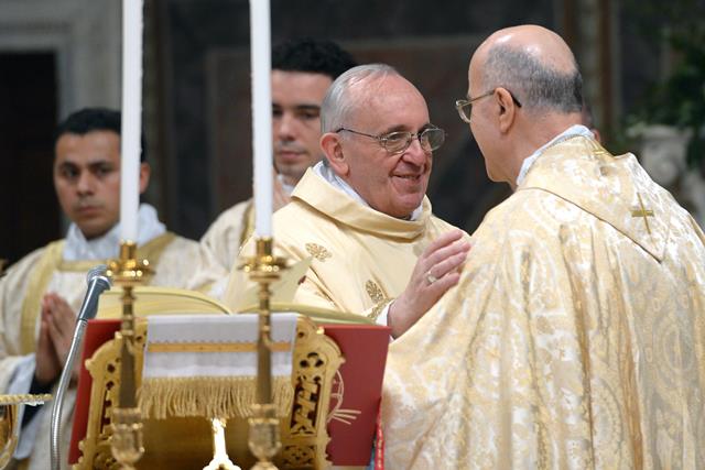 Poi l’aggiunta a braccio sullo Spirito Santo, che fa tutte le differenze nella Chiesa, ma dall’altra parte è quello che fa l’unità delle differenze, non nella “ugualità” ma nella armonia: «Tornerete ora nelle rispettive sedi – ha osservato Papa Francesco – per continuare il vostro ministero, arricchiti dall’esperienza di questi giorni, così carichi di fede e di comunione ecclesiale. Tale esperienza unica e incomparabile, ci ha permesso di cogliere in profondità tutta la bellezza della realtà ecclesiale, che è un riverbero del fulgore di Cristo Risorto, rafforzando il nostro impegno ad essere sapienti testimoni di speranza e di pace». Prima della benedizione finale, il Papa ha affidato il suo ministero, come pure le attese e le speranze di tutto il popolo di Dio, alla potente intercessione di Maria Madre della Chiesa: «Sotto il suo sguardo materno – ha invocato congedandosi Francesco – ciascuno di voi possa camminare lieto e docile alla voce del suo Figlio divino, rafforzando l’unità, perseverando concordemente nella preghiera e testimoniando la genuina fede nella presenza continua del Signore».