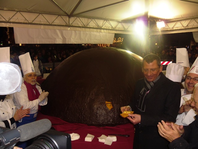 A dare il primo taglio al parrozzo gigante, iscritto ufficialmente al Guinnes dei Primati, è stato il sindaco di Pescara Luigi Albore Mascia, coadiuvato dagli assessori alla Cultura Giovanna Porcaro Sabatini, al Turismo Maria Grazia Palusci, al Commercio Gianni Santilli: «Questo evento – ha spiegato il primo cittadino di Pescara – ha decretato il successo di un’operazione di marketing territoriale straordinaria cominciata tre anni e mezzo fa, quando abbiamo voluto riallacciare il rapporto tra Pescara e il suo D’Annunzio. Oggi Pescara è sulla bocca di tutti per un evento gioioso, straordinario, che ha attirato nella nostra città cittadini della provincia, della Regione, ma anche appassionati di d’Annunzio giunti da San Severo solo per assistere ai nostri eventi e alle nostre mostre. E la sfida è vinta, grazie alla partecipazione e alla collaborazione di tutti, perché il nostro entusiasmo ha contagiato una città intera aprendo una gara di collaborazione, mettendo in rete tutte le realtà locali».