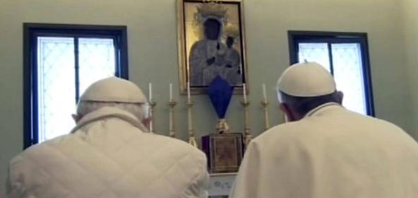 Benedetto XVI, in mattinata, aveva accolto il suo successore all’eliporto di Castelgandolfo dove c’è stato un abbraccio bellissimo tra i due. Bergoglio e Ratzinger si sono poi diretti insieme in auto verso il Palazzo Apostolico, per un incontro nella biblioteca e un pranzo in compagnia dei due segretari, monsignor Georg e monsignor Xuereb. Un altro momento significativo è stato quello avvenuto in cappella quando, per la preghiera, Benedetto XVI voleva che il Papa si sedesse sull’inginocchiatoio d’onore, ma Papa Francesco ha voluto che si sedessero insieme sullo stesso banco a pregare: «Siamo fratelli», ha detto il Pontefice secondo quanto riferito.