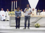 In coda a questa giornata dal programma breve, ma intenso c’è stato quindi il tempo per ascoltare due testimonianze vocazionali della nostra diocesi. La prima è stata quella di Alessio De Fabritiis, un ragazzo pennese che ha scoperto la propria vocazione mettendosi alla sequela del Signore ed entrando in seminario: «La vocazione, se è autentica, – ha testimoniato Alessio – cresce. È la certezza di capire cosa c’è nel nostro cuore, mettendo da parte la fama, il desiderio di apparire che io avevo. Il Signore mi ha fatto capire che la cosa più bella, il suo disegno, era già dentro di me». La seconda, è stata quella di Attilio e Silvia, una coppia sposata da 14 anni con 5 figli della parrocchia di San Giovanni Bosco di Montesilvano. Attilio è quarantunenne impiegato precario e Silvia è una quarantenne casalinga: «L’immagine che ci accompagna fin da quando abbiamo deciso di sposarci – hanno condiviso i due – è quella del logo che fece da sfondo allo svolgimento del Congresso eucaristico di Pescara, nel 1977. Quel logo rappresentava una tavola imbandita, dove a destra sedevano gli sposi e a sinistra Gesù, mentre davanti ci sono due sedie vuote. Questa figura, ci sembra l’invito a vivere il nostro rapporto di coppia ricordando che, insieme, siamo la sposa di Cristo e sposando lui possiamo accogliere a questo banchetto di festa le persone che ci stanno più care».