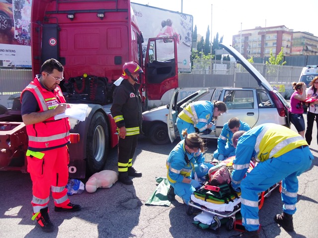 È stato questo lo scenario drammatico, ma fortunatamente solo simulato, ricreato nell’ambito del primo Campus formativo dell’emergenza, l’esercitazione di soccorso sanitario e Protezione Civile organizzata dalla Misericordia di Pescara, con il patrocinio dell’amministrazione comunale e la collaborazione di 118, Croce Rossa Italiana, Vigili del Fuoco, Polizia Municipale e volontari di Protezione Civile che ieri pomeriggio, dalle 14 alle 20, hanno occupato il piazzale dell’antistadio pescarese inscenando i soccorsi: «Per noi – ha spiegato Berardino Fiorilli, assessore alla Protezione Civile – questo evento è stato un test attraverso il quale migliorare. La Protezione Civile ha bisogno di esercitazioni perché la teoria è importante, ma se manca l’aspetto pratico diventa difficile agire quando queste emergenze accadono realmente».