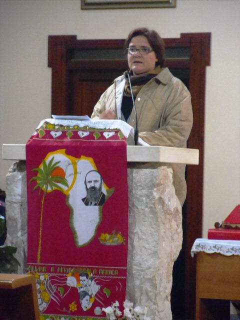 Tiziana: «Siamo contenti -osserva – di partecipare a questa veglia di preghiera con voi, perché la preghiera è la forza fondamentale per vivere ogni missione. La nostra vita di comunità, ma anche tutta pastorale, prende la forza dalla preghiera. E allora vi chiedo di pregare, affinché il Signore mandi missionari autentici e possa far di noi missionari che non tradiscono la sua parola, il suo amore per l’uomo».