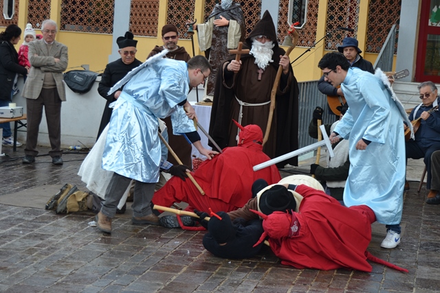 Ma la rievocazione del Sant’Antonio non potrà avere luogo se, come da tradizione, non verrà anticipata dalla benedizione degli animali e dei pani impartita nella piazza antistante la chiesa di San Silvestro Papa dal parroco don Cristiano Marcucci, al termine della Messa, alle ore 12. Quindi, nel pomeriggio, i diciotto attori per passione sansilvestresi si caleranno nei panni di Sant’Antonio, del diavolo, degli eremiti e degli angeli riproponendo “Lu Sandandonie” nei luoghi da sempre teatro della tradizionale recita, alle ore 16.30 in via Lago di Provvidenza, alle 17.15 in via Mittiguerra, alle 18 presso la tipografia Sigraf, alle 19 in contrada Fontechiaro e infine, alle 20, in via del Trappeto: «La rappresentazione – precisa D’Ascanio -, sarà allegra e trascinante concludendosi con l’esecuzione di due stornelli, nel canto dei quali coinvolgeremo anche il folto pubblico».