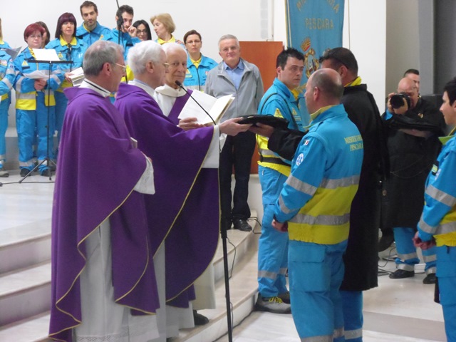 «Mettete più cuore in quelle mani, più cuore, più soccorso, più compassione». È stata questa l’esortazione rivolta ieri, citando San Camillo de Lellis, dal vicario generale dell’arcidiocesi di Pescara-Penne monsignor Vincenzo Amadio ai 25 volontari che, dopo aver svolto un anno di aspirantato, sono ufficialmente divenuti confratelli e consorelle della Misericordia di Pescara (la più grande associazione di volontariato presente a Pescara che si occupa di soccorso sanitario) partecipando alla cerimonia della vestizione, nell’ambito di un Santa Messa celebrata presso la parrocchia di San Pietro apostolo.