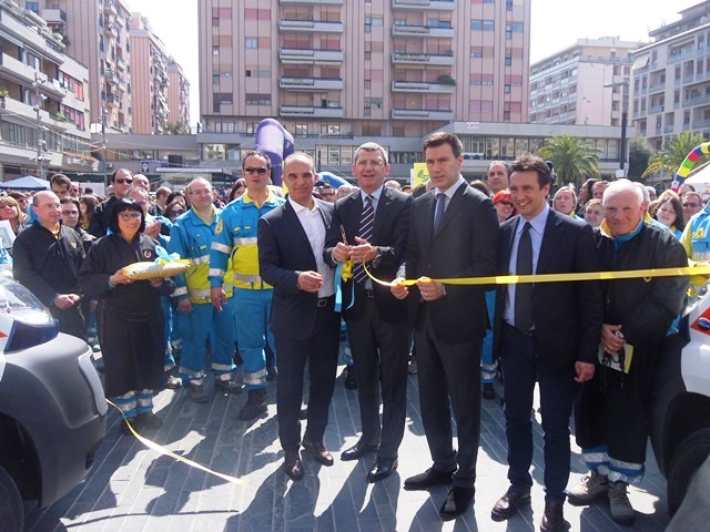 L'assessore regionale Masci, il sindaco Mascia, il vice Fiorilli ed il volontario Gianfranco D'Incecco inaugurano le ambulanze