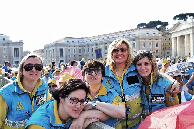 Erano in 350 i volontari pescaresi della Misericordia, appartenenti alle sezioni di Pescara, Moscufo, Alanno e Scafa, che ieri alle prime luci dell’alba sono partiti in pullman alla volta di piazza San Pietro a Roma, scendendo per un giorno dall’ambulanza così da prendere parte all’incontro nazionale dei volontari della Misericordia e dell’associazione donatori di sangue Fratres con Papa Francesco: «Siamo arrivati nella capitale – racconta Lorena Silvetti, componente del direttivo della Misericordia di Pescara e capospedizione – intorno alle 6.30, imbattendoci in una lunga fila prima di entrare in una piazza gremita da 60 mila volontari».