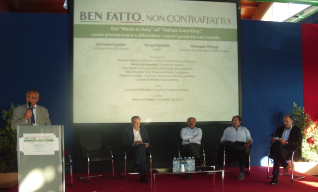 Insomma, in un gremito padiglione espositivo del Porto Turistico Marina di Pescara, la parola chiave è stata tutelare il Made in Italy combattendo l’Italian Sounding, ovvero il mercato alternativo che nel mondo imita e tarocca i prodotti italiani ed, ovviamente, le grandi specialità abruzzesi. Alimenti come pasta, vino e olio, infatti, sono più che mai nel mirino dei taroccatori americani, australiani e asiatici che, ad esempio, suppliscono alla carenza del clima e del vitigno con soluzioni liquide e coloranti in grado di riprodurre un buon Montepulciano.