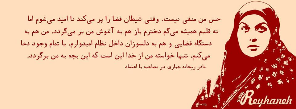 Pare l’abbia preso in parola, Reyhaneh, che avverte la madre: «E adesso sto cedendo e sto abbracciando la morte. Perché nel tribunale di Dio incriminerò gli ispettori, l’ispettore Shamlou, il giudice, i giudici della Corte suprema che mi hanno colpita quando ero sveglia e non hanno smesso di abusare di me. Nel tribunale del creatore accuserò il dottor Farvandi, e Qassem Shabani e tutti coloro che per ignoranza o menzogna mi hanno tradita e hanno calpestato i miei diritti.