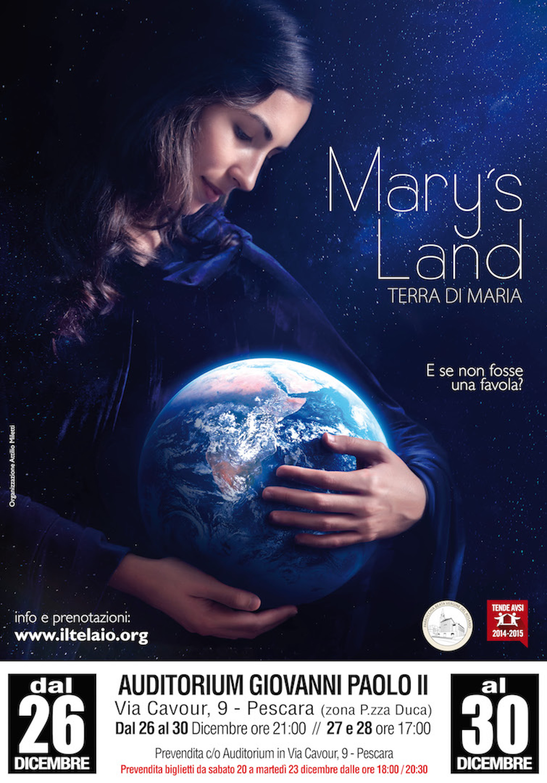 Verrà proiettato anche a Pescara, dal 26 al 30 dicembre prossimi presso l’auditorium Giovanni Paolo II in via Cavour (accanto alla chiesa Madonna del Rosario), il nuovo film rivelazione “Terra di Maria” diretto dal regista spagnolo Juan Manuel Cotelo, attualmente in programmazione in svariate sale cinematografiche di tutta Italia.
