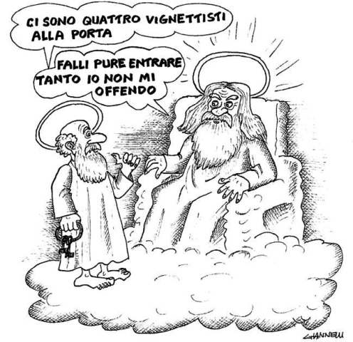 Una vignetta ironica di Giannelli, pubblicata dal Corriere della Sera, dedicata alle vittime di Charlie Hebdo
