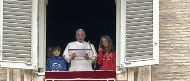 Papa Francesco presiede l'Angelus, insieme a due ragazzi dell'Azione Cattolica