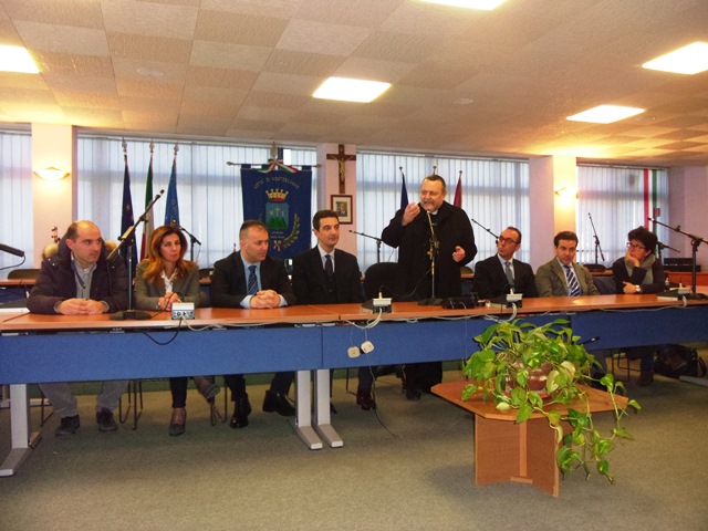 Lo ha affermato ieri mattina l’arcivescovo di Pescara-Penne, monsignor Tommaso Valentinetti, visitando il Comune di Montesilvano nell’ambito della sua visita pastorale alle parrocchie della città, accolto dal sindaco Francesco Maragno, da assessori e consiglieri comunali oltre che dai dipendenti e da una delegazione di cittadini ai quali ha lanciato un messaggio significativo: «Questa città – sottolinea il presule – ha bisogno di unità, non ha bisogno di divisioni, ha bisogno di vedere corpi uniti che partecipano, che vivono, che si interessano del bene dei cittadini».