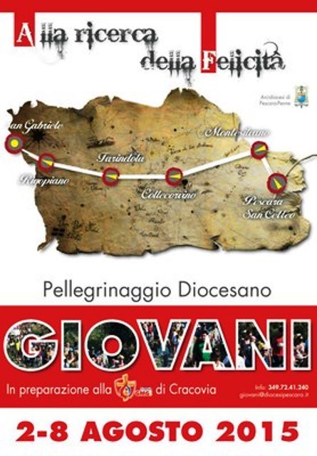 Saranno 70 i giovani pellegrini, giunti da diverse parrocchie dell’arcidiocesi di Pescara-Penne (fra cui spiccano undici ragazzi albanesi della diocesi di Sapa accompagnati dai missionari Goffredo e Tiziana Leonardis), che si ritroveranno fin dalle ore 18.30 nella Cattedrale pescarese per prendere parte alla Santa messa presieduta dall’arcivescovo monsignor Tommaso Valentinetti, mettendosi poi in marcia per dare simbolicamente avvio al cammino preparatorio dell’imminente Giornata mondiale della gioventù polacca, che avrà luogo a Cracovia dal 25 al 31 luglio del 2016.
