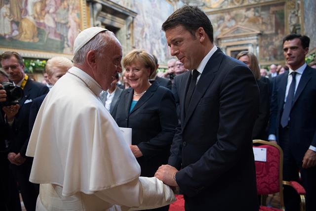 L’incontro tra Papa Francesco, il premier italiano Matteo Renzi e la cancelliera tedesca Angelo Merkel