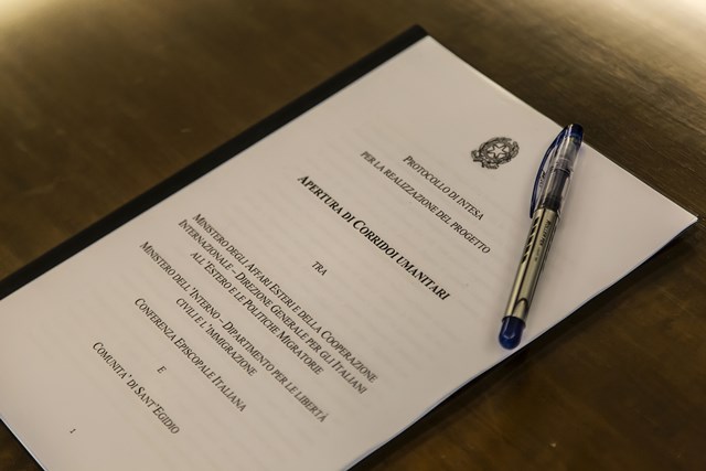 La firma del protocollo d'intesa che ha aperto il corridoio umanitario