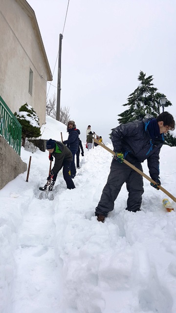 Ai loro occhi la neve si è mostrata in tutto il suo spessore, fino a tre metri, ma i giovani non si sono lasciati scoraggiare, iniziando subito a spalare: «Siamo tornati – aggiunge Luca – anche venerdì e ieri. Venerdì, in particolare, abbiamo lavorato tutto il giorno liberando dalla neve la casa di un disabile, quella di un giovane malato di cancro e di tante persone bloccate in casa senza corrente elettrica». Solo grazie ai gruppi elettrogeni, infatti, venerdì è tornata la luce nelle abitazioni della località montana pescarese.