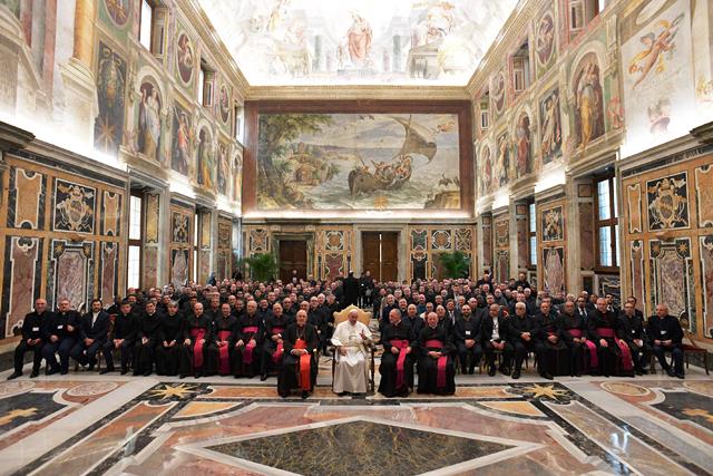Quindi i ringraziamenti e i saluti: «Vi ringrazio – conclude il Papa – per il vostro impegno in favore dell’annuncio del Vangelo della famiglia. Lo Spirito Santo vi aiuti ad essere ministri di pace e di consolazione in mezzo al santo popolo fedele di Dio, specialmente alle persone più fragili e bisognose della vostra sollecitudine pastorale».