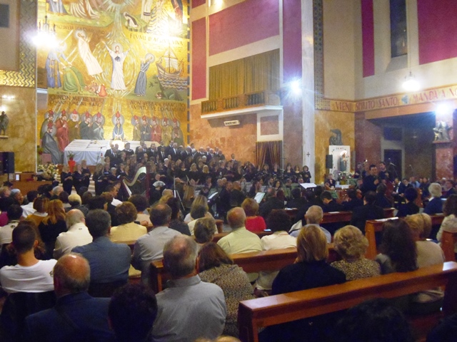 Un’ora e mezzo di concerto, quello di sabato sera, seguito con viva soddisfazione anche dall’arcivescovo di Pescara-Penne monsignor Tommaso Valentinetti, il quale da tempo aveva puntato sull’obiettivo di realizzare un’unica corale diocesana: «Questa era una scommessa – riconosce il presule -, perché quando abbiamo cominciato a pensare a una cosa del genere, non sapevamo se ci saremmo riusciti. Dire grazie ai cori è poco, non solo per il sacrificio delle prove che in fondo per il loro è routine, ma soprattutto per aver scelto di rinunciare un po’ a se stessi per fondersi in questa magnifica corale. Un grazie anche all’orchestra, che si è formata per l’occasione».